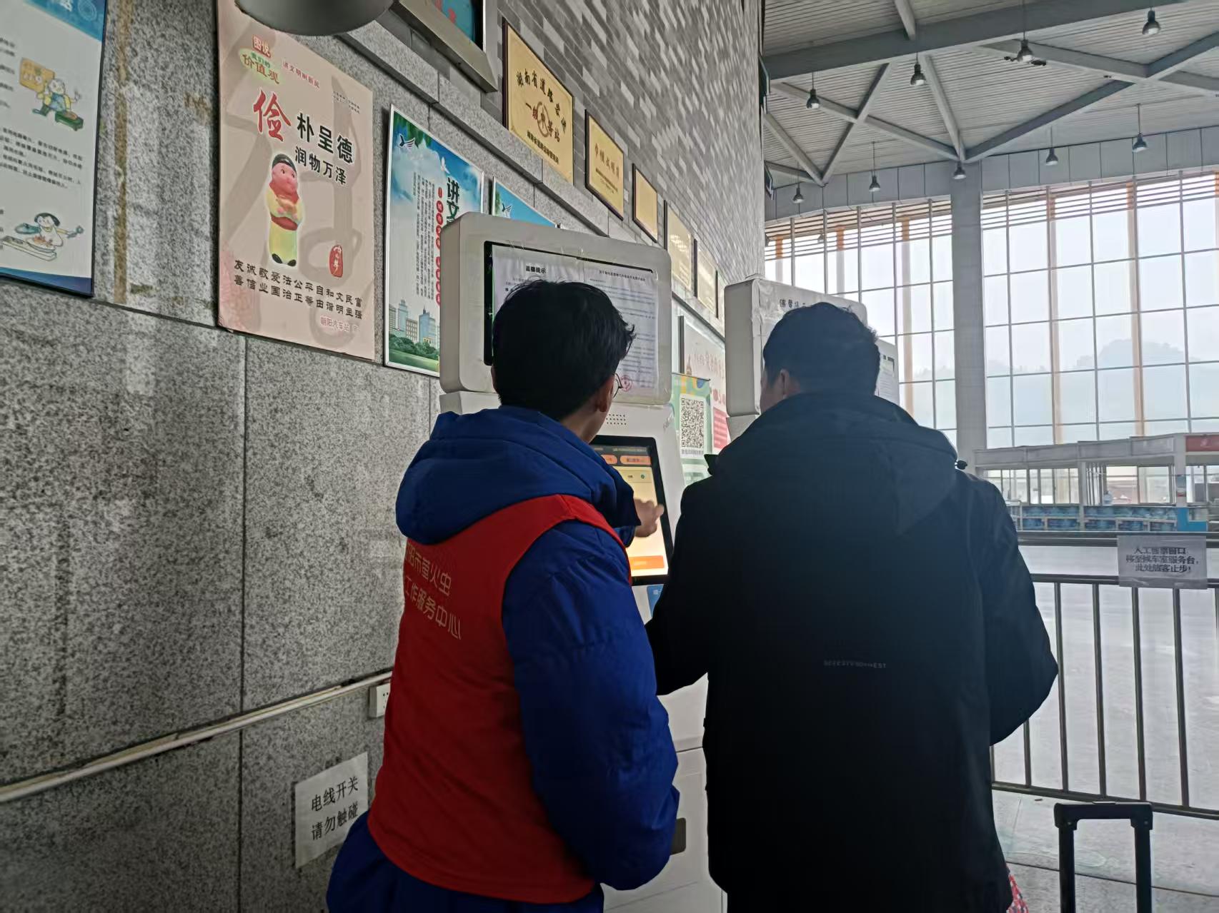 2月13日9:00,朝陽汽車站進(jìn)站處一個(gè)身穿紅馬甲的“工作人員”正在自助售票機(jī)前指導(dǎo)旅客買票。這是外事旅游運(yùn)輸分公司聯(lián)合益陽螢火蟲社會工作服務(wù)中心在春運(yùn)期間開展的“暖冬行動 情滿旅途”春運(yùn)志愿服務(wù)。