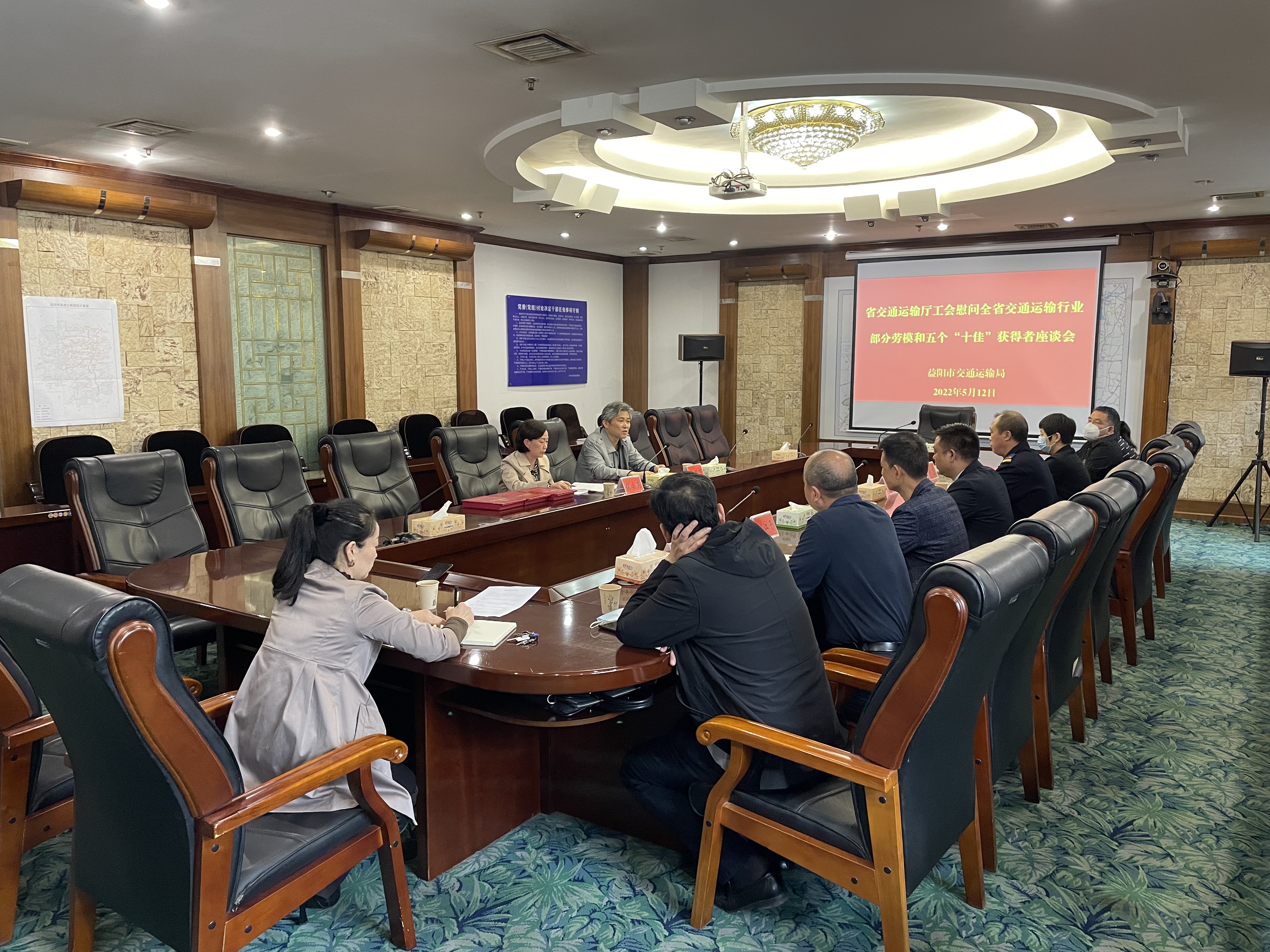 市交通運(yùn)輸局黨組成員、副局長(zhǎng)陳晚飛(右一)出席座談。公司工會(huì)主席王錫龍帶隊(duì)參加。
