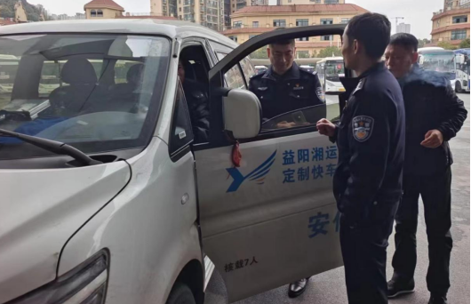 12月15日,湖南省高速公路交通警察局益陽支隊朝陽大隊中隊長曹卓林、孫飛虎檢查益陽市東方旅游巴士有限公司交通安全生產(chǎn)工作。公司經(jīng)理宋新等陪同。