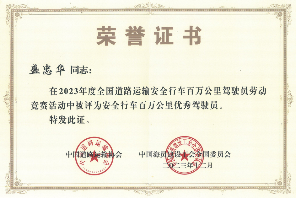 1月10日獲悉,南縣客運分公司駕駛員盛忠華榮獲“全國道路運輸安全行車百萬公里優(yōu)秀駕駛員”稱號。
