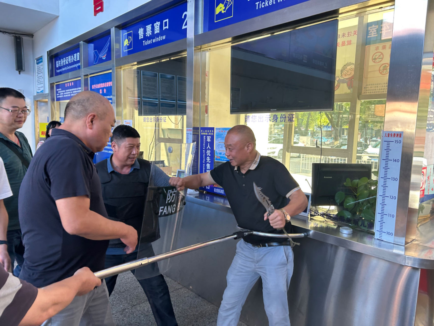 6月26日16點,資陽汽車站開展了反恐防暴應(yīng)急演練活動。本次演練通過模擬在進站口“三品”檢查過程中發(fā)現(xiàn)1名男子攜帶管制刀具,還原了反恐防暴現(xiàn)場。車站工作人員通力協(xié)作,最終將其成功制服,事態(tài)得到全面控制。
